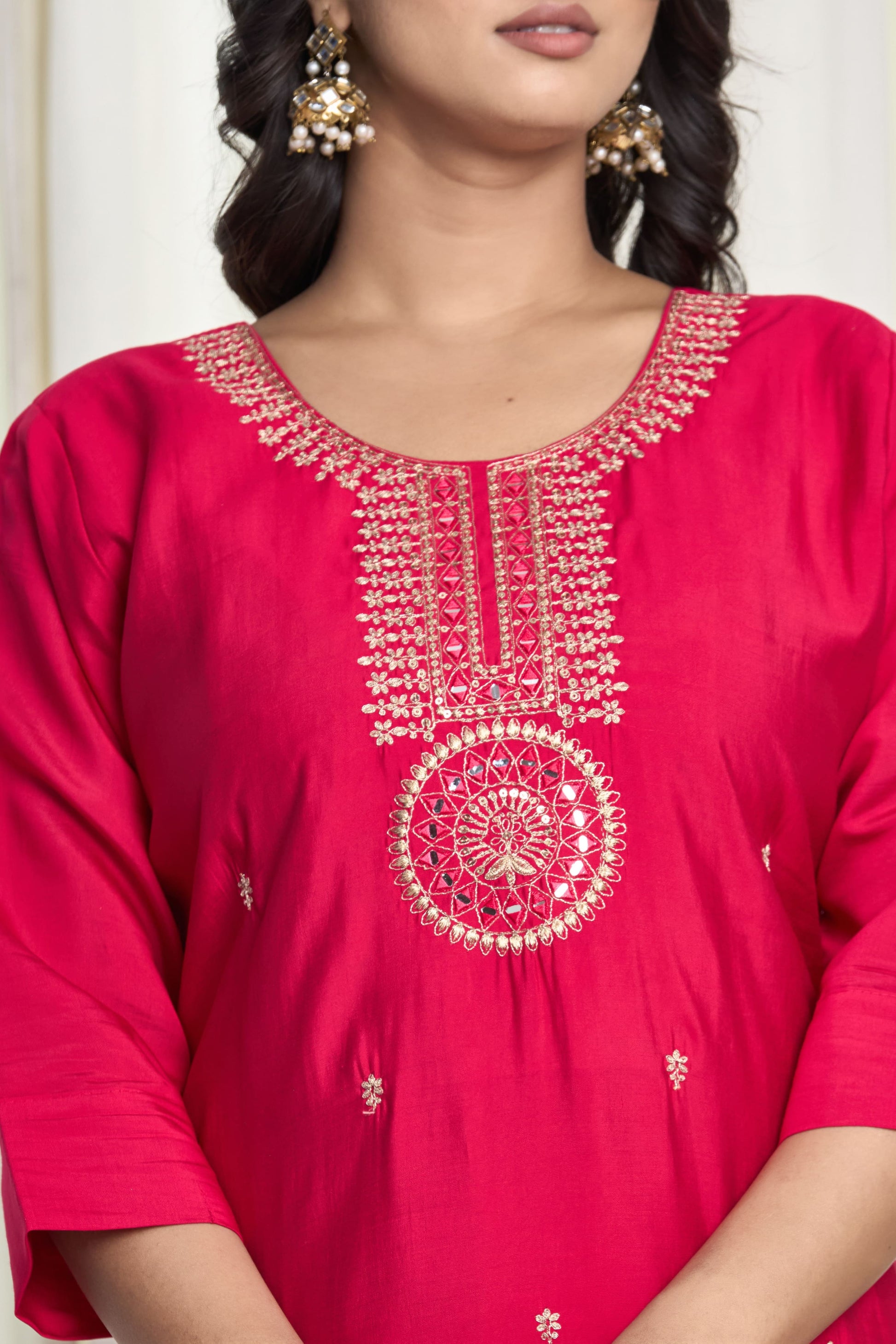 Pink Embroidered Kurta Set with Floral Dupatta – Royale