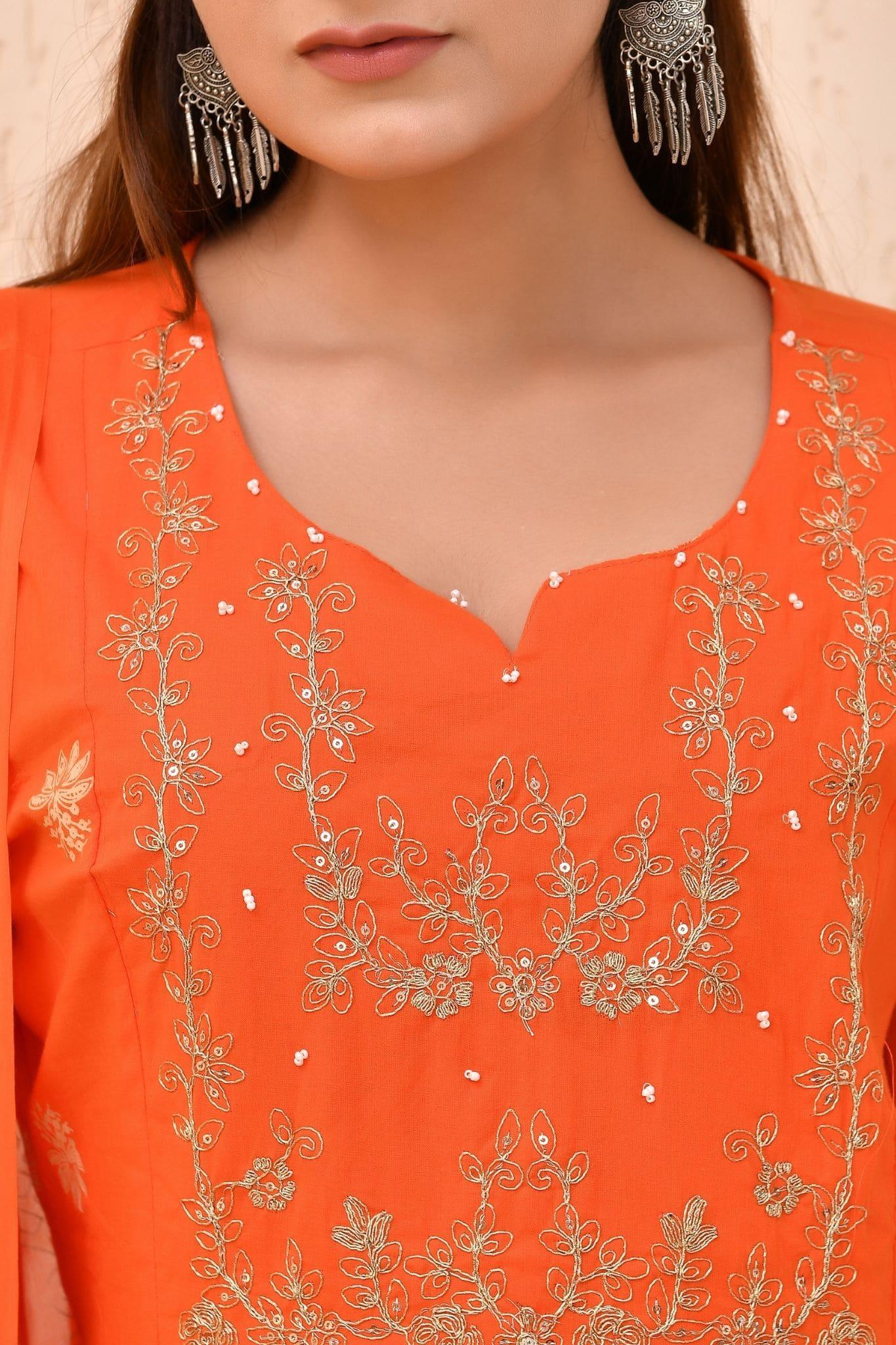 Vibrant Orange Embroidered Anarkali Kurta Set with Dupatta – Wear for Women